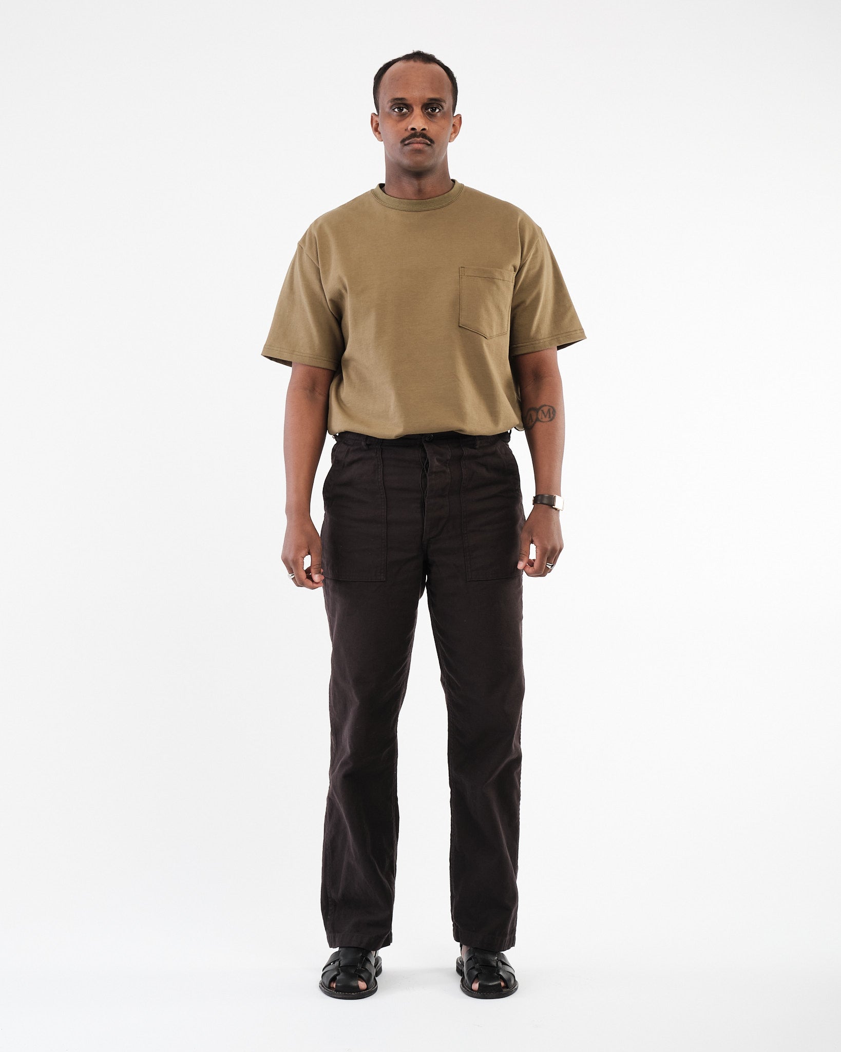 De orSlow US Army Fatigue Pants Regular Fit i Sort er inspireret af klassiske militære designs og fremstillet med et moderne præg. Lavet i Japan af holdbart bomuldsstof, tilbyder disse bukser en alsidig og komfortabel regular fit, der er perfekt til hverdagsbrug. Med autentiske militærstil-detaljer, inklusiv store forlommer med lap, baglommer med klap og forstærket syning, kombinerer disse fatigue-bukser funktionalitet og tidløst design. Den slanke sorte farve tilføjer alsidighed, hvilket gør dem velegnede til både afslappede og raffinerede outfits. Bygget til at holde, legemliggør disse bukser orSlows dedikation til langsomt fremstillet håndværk.
