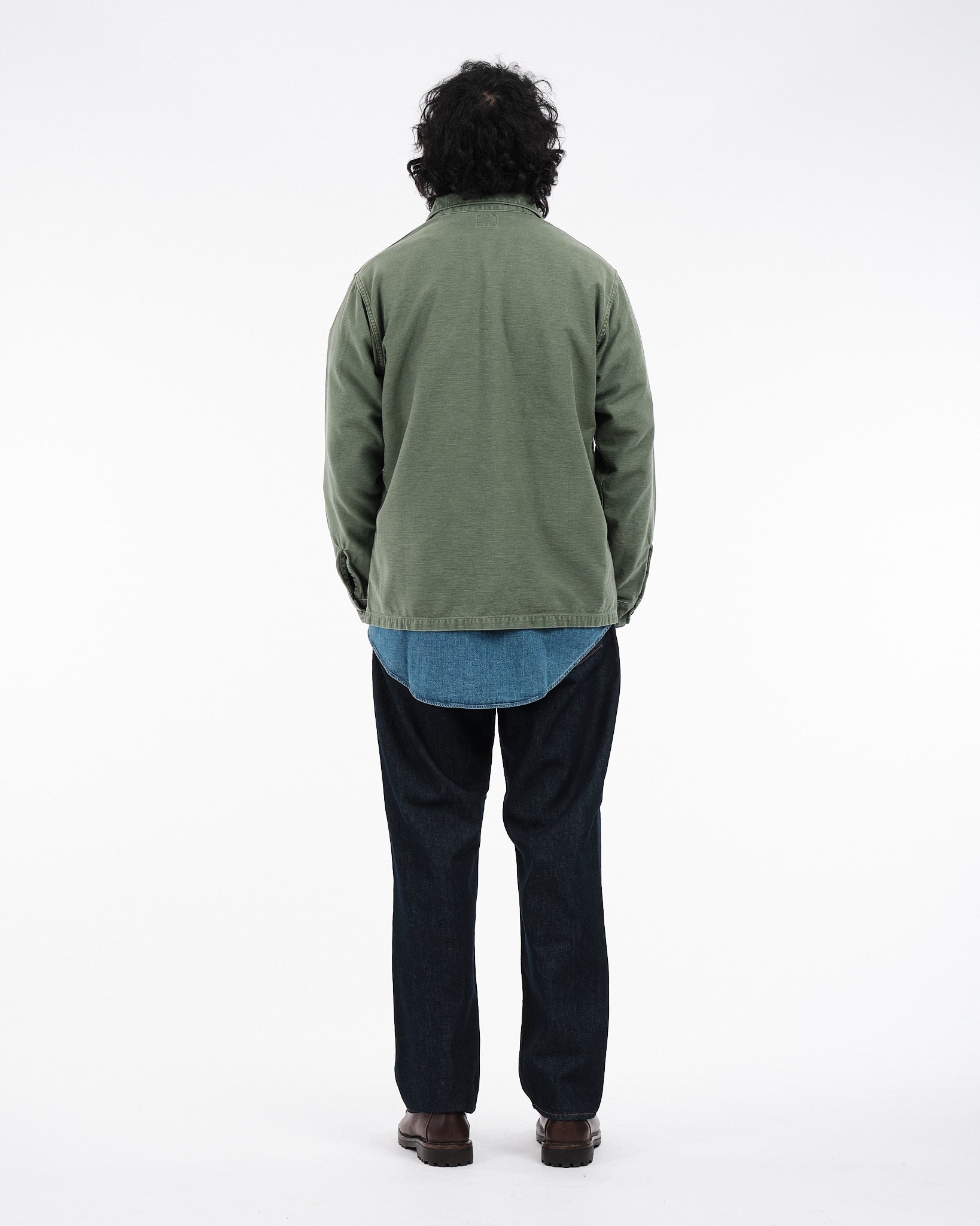 • Autentisk Konstruktion: Funktioner som den spidse krave og det tunge omvendte sateen stenvaskede stof hylder det klassiske militære design.