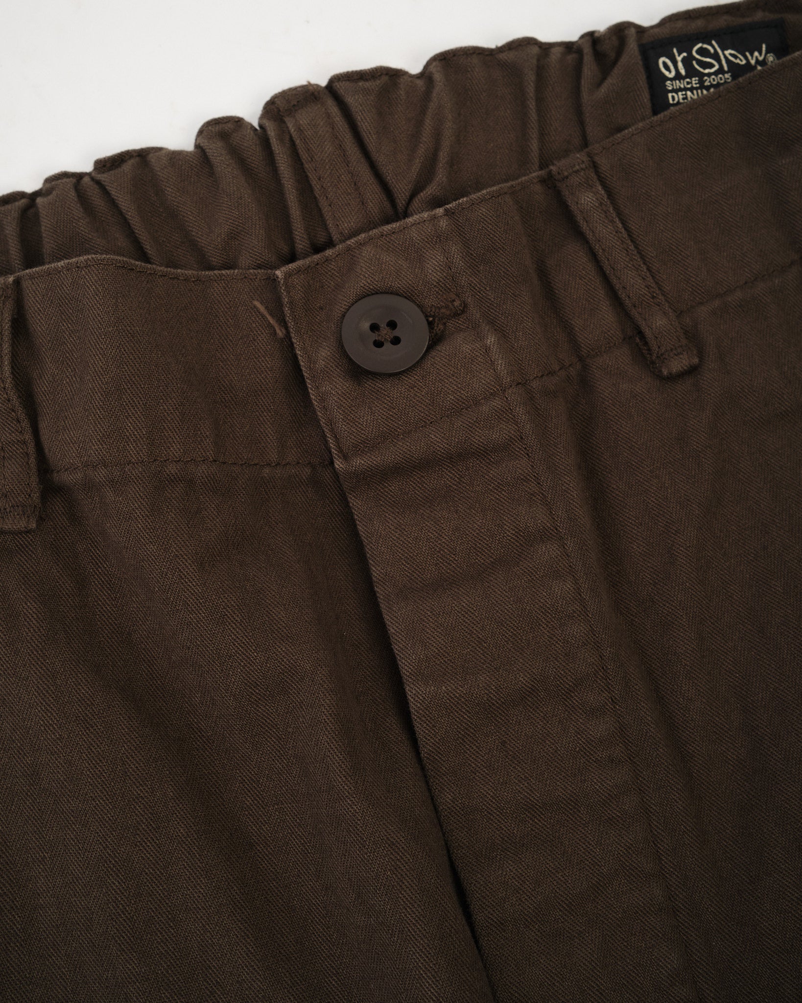 orSlow Wide Fit Work Pants i kaffebrown giver et moderne twist på traditionelt fransk arbejdstøj ved at tilbyde et komfortabelt og praktisk design med vid pasform, der er velegnet til forskellige lejligheder. Håndlavet i Japan af bomuldsmateriale og med en høj talje samt rummelige ben, der tillader ubegrænset bevægelse. Den stilfulde kaffebrown nuance tilføjer alsidighed og elegance til disse bukser, som er perfekte til både afslappede sammenkomster og formelle lejligheder. Med lommer foran og bagpå samt en holdbar konstruktion til langvarig brug fremhæver det orSlows forpligtelse til kvalitet og klassisk design.