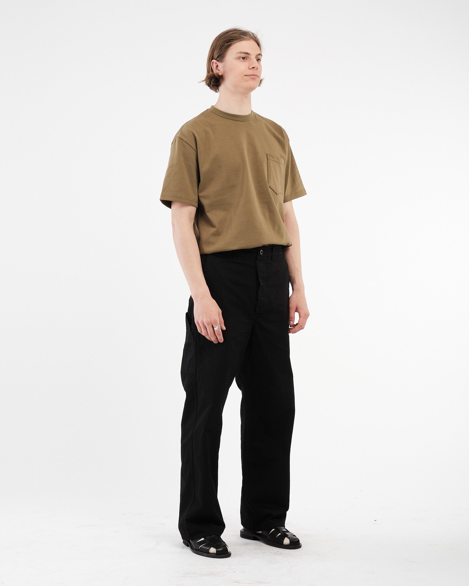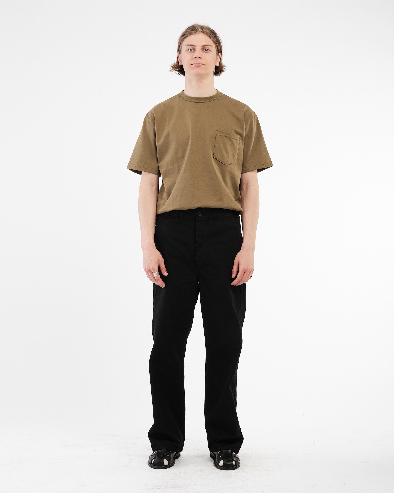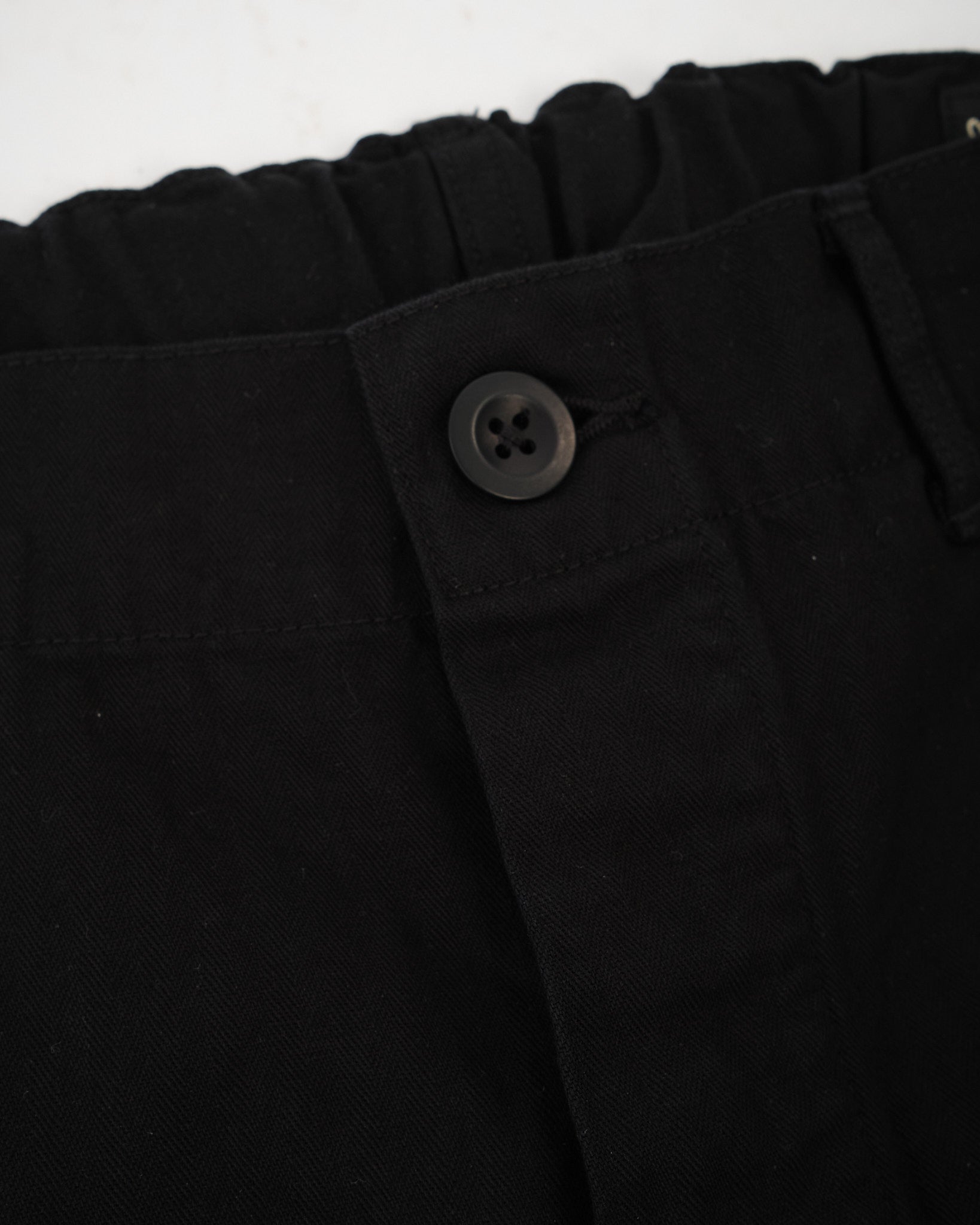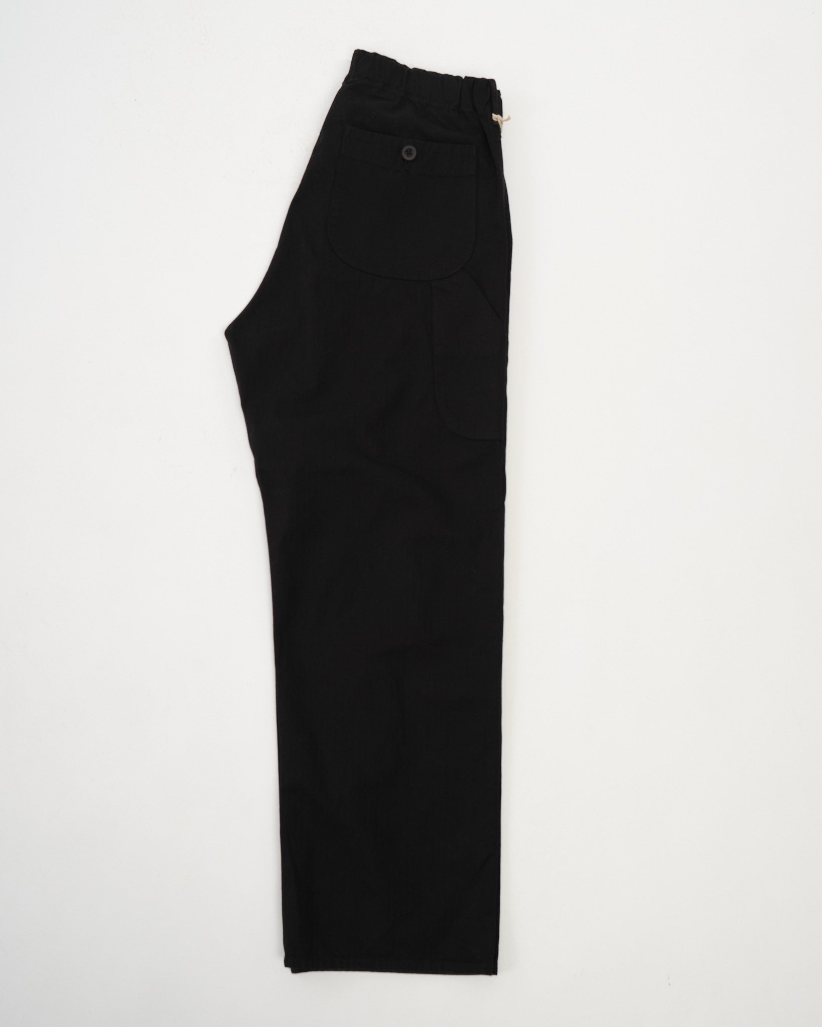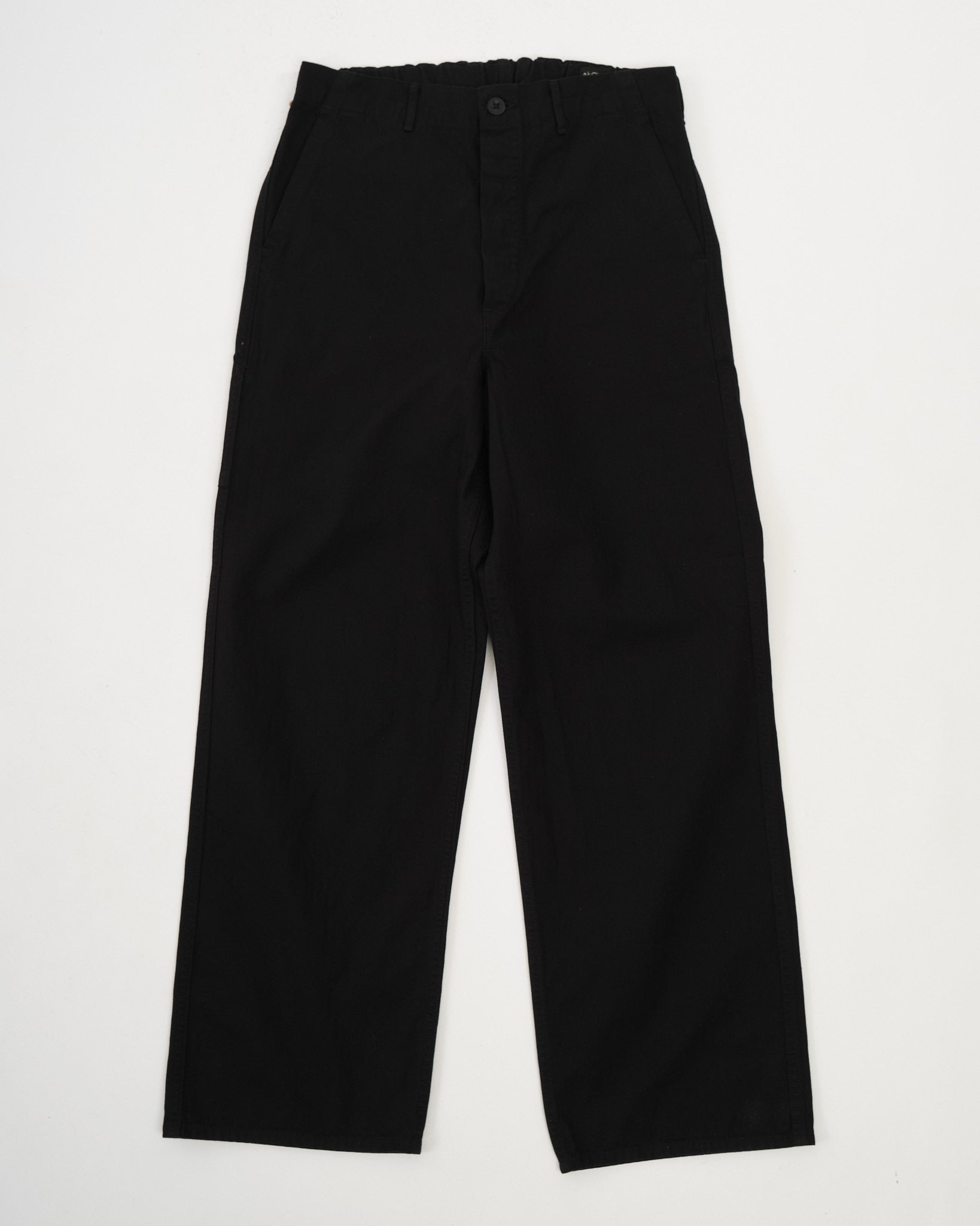 De orSlow Wide Fit French Work Pants i Sort er en moderne fortolkning af traditionelt fransk arbejdstøj, omhyggeligt udformet for at tilbyde både holdbarhed og moderne stil. Fremstillet af bomuld af høj kvalitet, giver disse bukser en behagelig, men robust fornemmelse, velegnet til daglig brug.