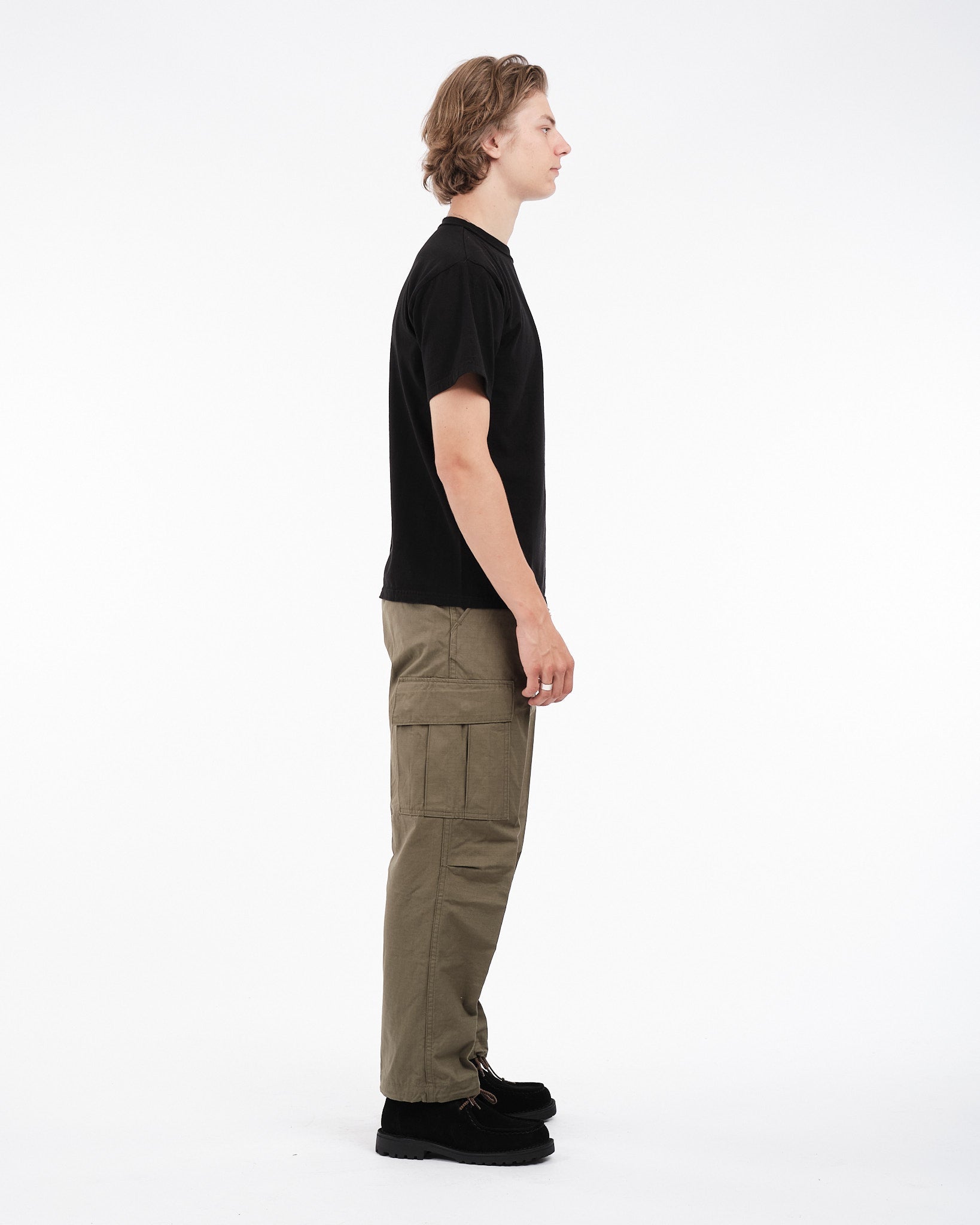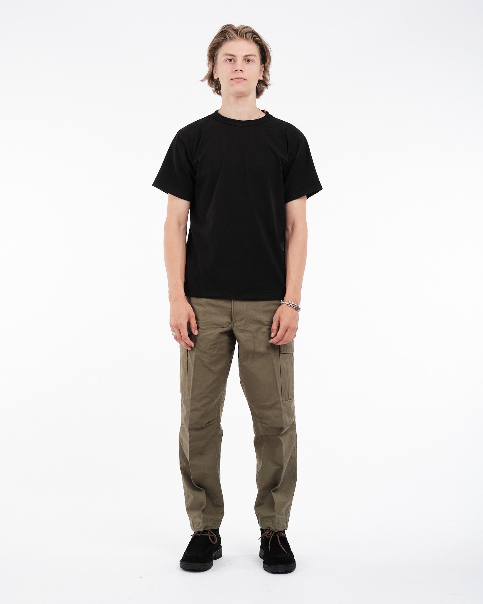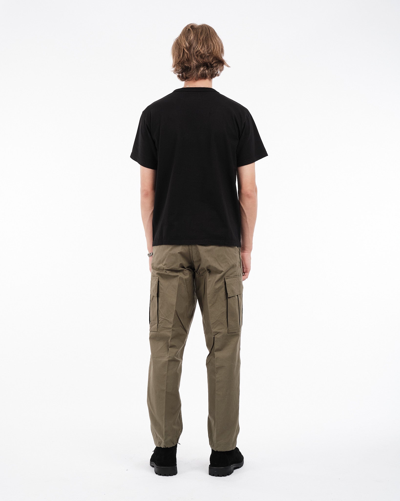 De orSlow Vintage Fit 6 Pockets Cargo Pants i Army Green er en hyldest til klassisk militærtøj, der kombinerer funktionalitet med tidløst design. Fremstillet af holdbart bomuld ripstop-stof, er disse bukser bygget til at modstå daglig slid og ælde. Den afslappede vintage pasform tilbyder komfort og lethed i bevægelse, mens seks rummelige lommer giver rigelig opbevaringsplads til dine nødvendigheder. Justerbare cinch-tabs ved taljen og snøremanchetter tillader en tilpasselig pasform, hvilket forbedrer deres praktiske appel. Uanset om du udforsker det fri eller navigerer gennem bylivet, er disse cargobukser en pålidelig ledsager.