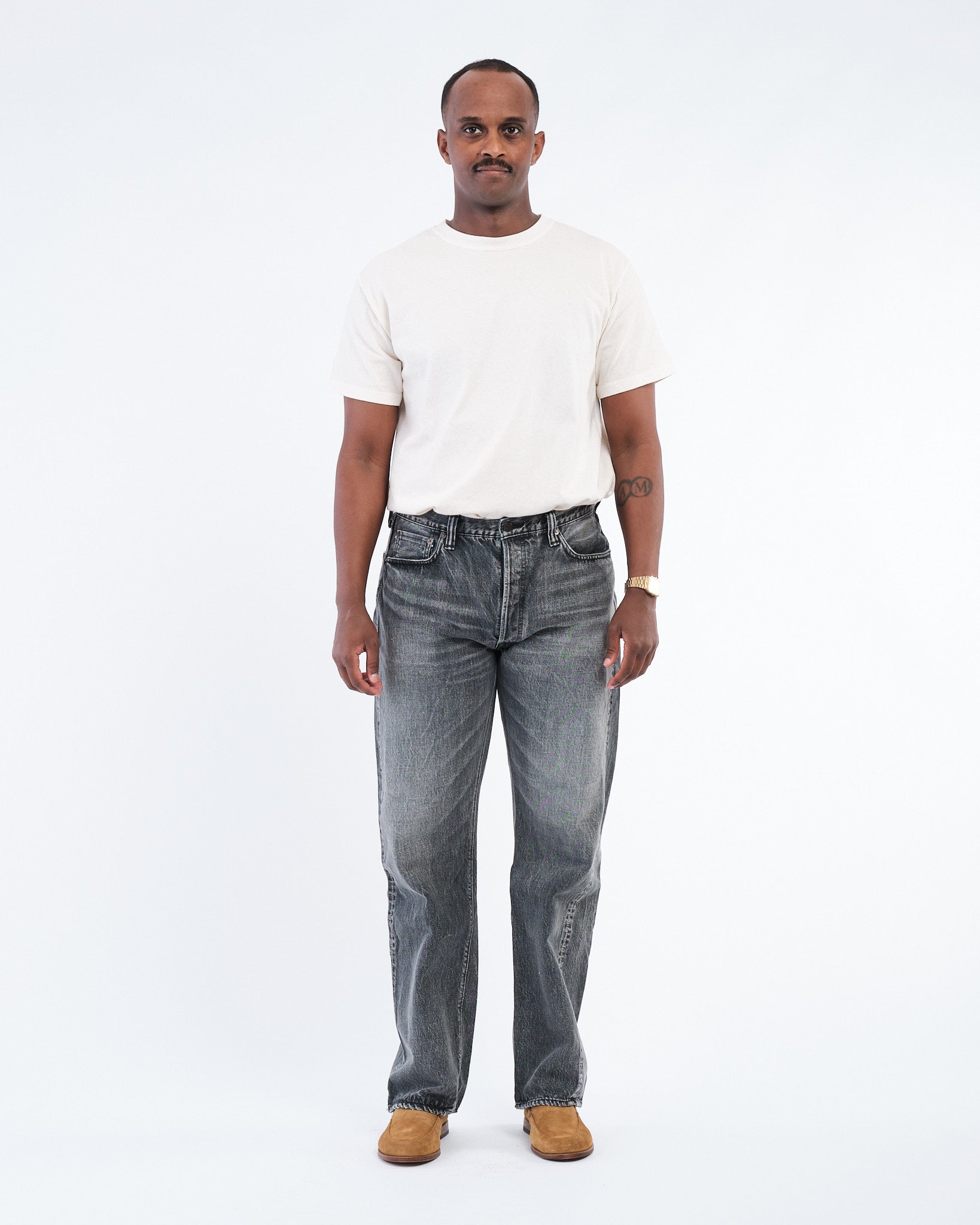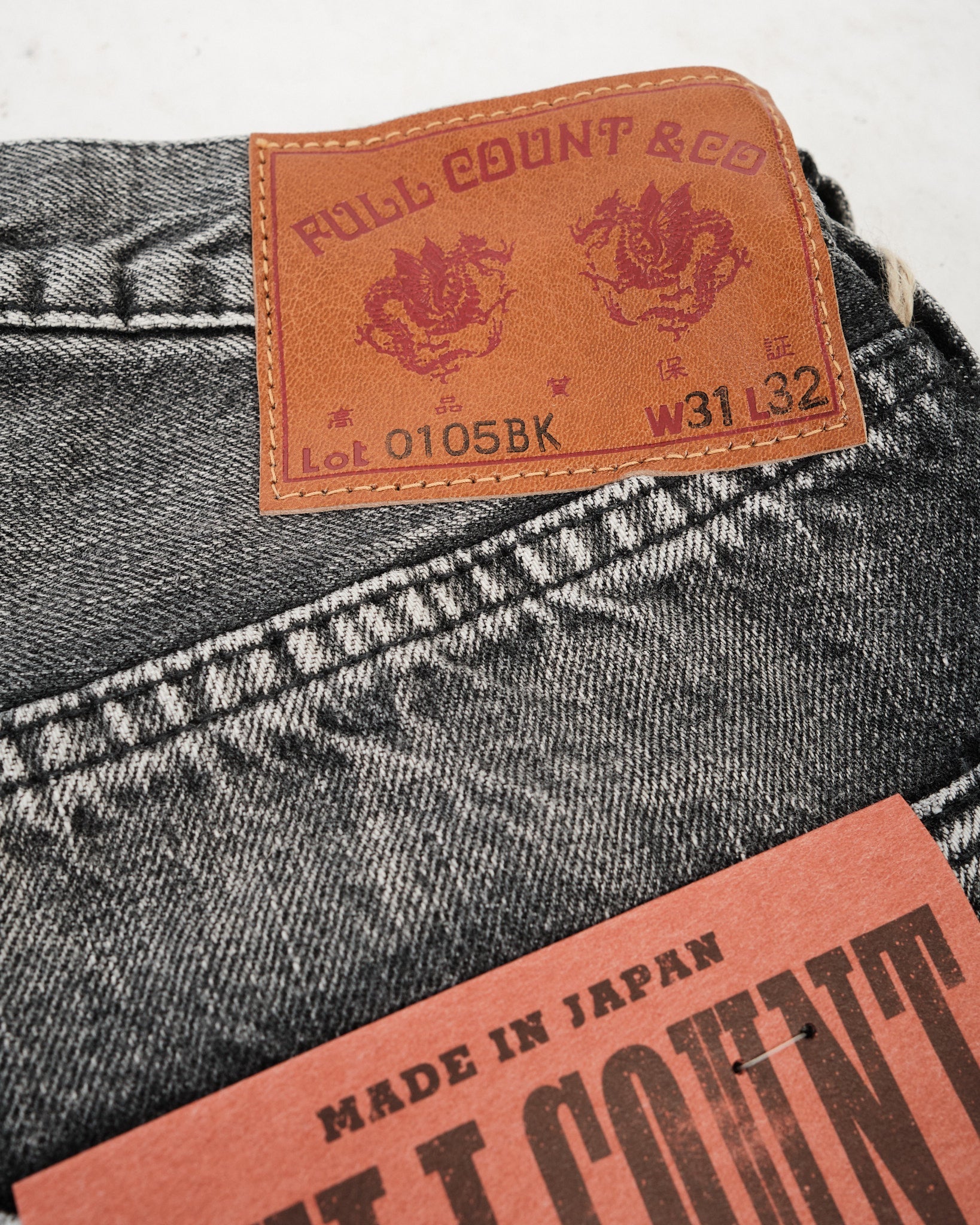 Den FULL COUNT 0105BKHW WIDE BLACK SELVEDGE DENIM DARTFORD (0105BKHW) er skabt til dem, der sætter pris på den langsomme, smukke ældning af premium sort denim. Lavet af 13,7 oz originalt selvedge sort denim, er disse jeans vævet af 100% Zimbabwe bomuld, hvilket sikrer overlegen blødhed og holdbarhed. Den bredbenede 0105 silhuet, en Full Count-klassiker, giver en afslappet, men struktureret pasform. I modsætning til indigo denim, falmer det reb-farvede sorte stof gradvist og afslører vertikale fades over tid. Vævet på kraftvæve i et langsomt tempo, beholder dette denim den styrke, tekstur og komfort, som kun traditionelt håndværk kan levere.