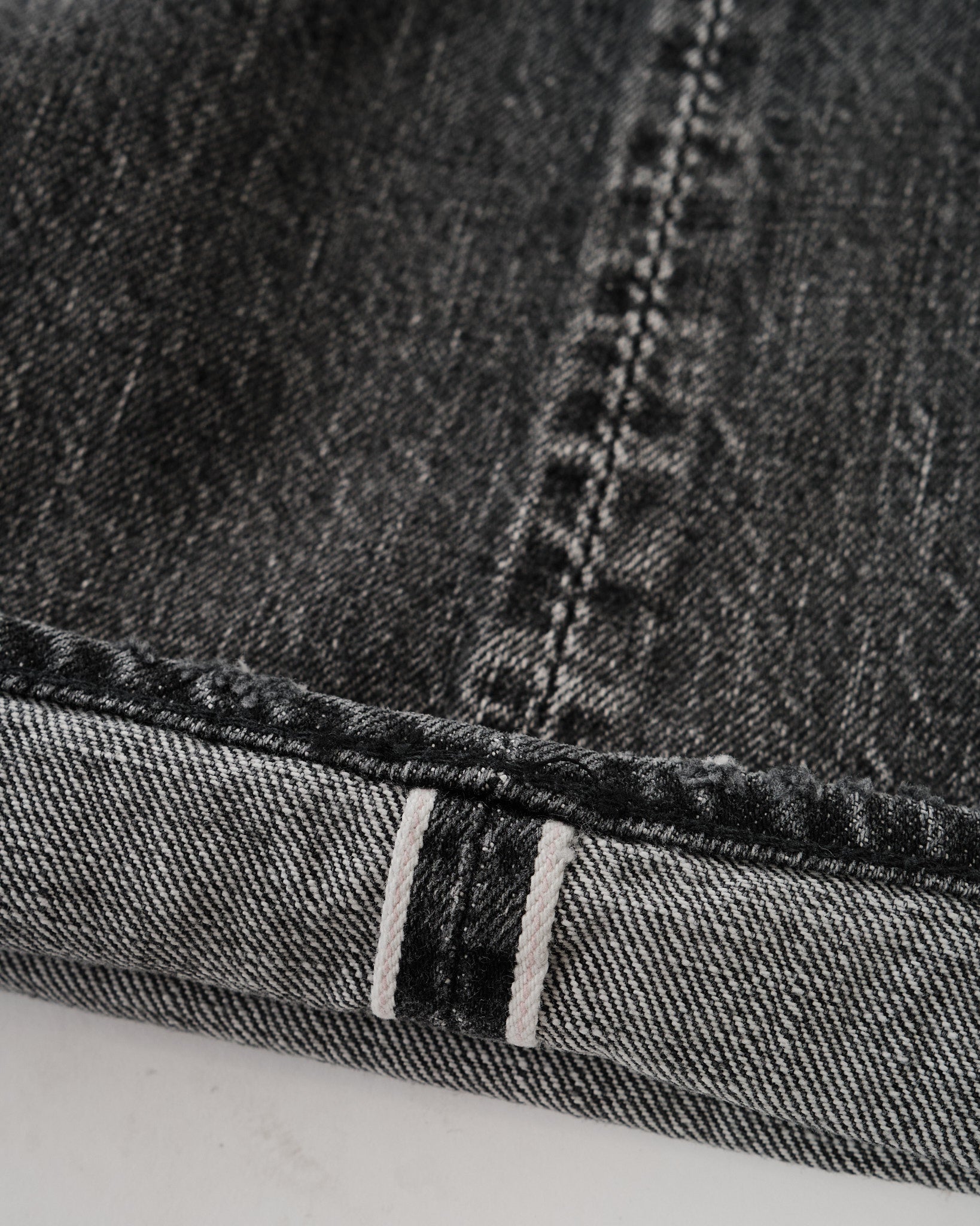 • 13.7oz original kantsyet sort denim for holdbarhed og tekstur